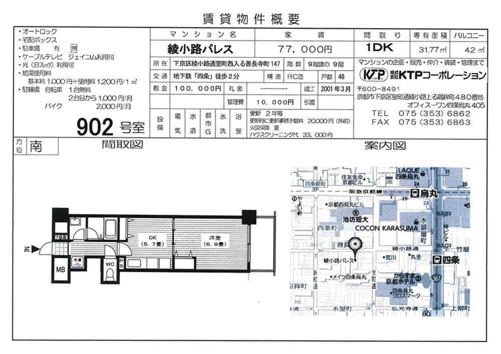賃貸物件概要書のダウンロード→綾小路パレス902